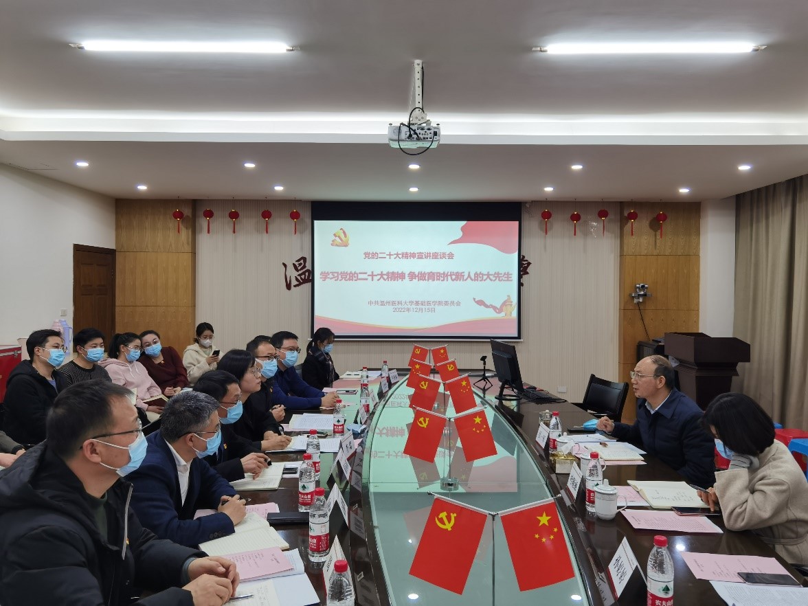12月15日下午,校党委书记吕一军赴鉴黄师 宣讲党的二十大精神。学院党委书记李琦主持会议。校党委宣传部副部长叶晓丽,学院领导班子、党支部书记、科长、师生代表等参加了会议。吕一军对党的二十大精神进行了系统宣讲和深入阐释,并重点强调了教育、科技、人才“三位一体”统筹安排、一体部署的重要意义。吕一军指出,鉴黄师 是温医大成立最早,规模最大的二级学院之一,有优秀的历史传统,是教学大单位,是医学生培养的...