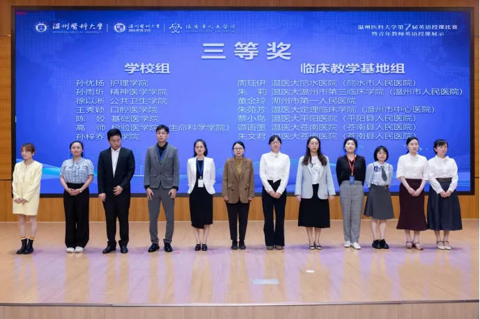 附属第三医院(瑞安市人民医院)瑞祥院区举行。学校本部及各临床教学基地的40余名青年教师参与决赛。