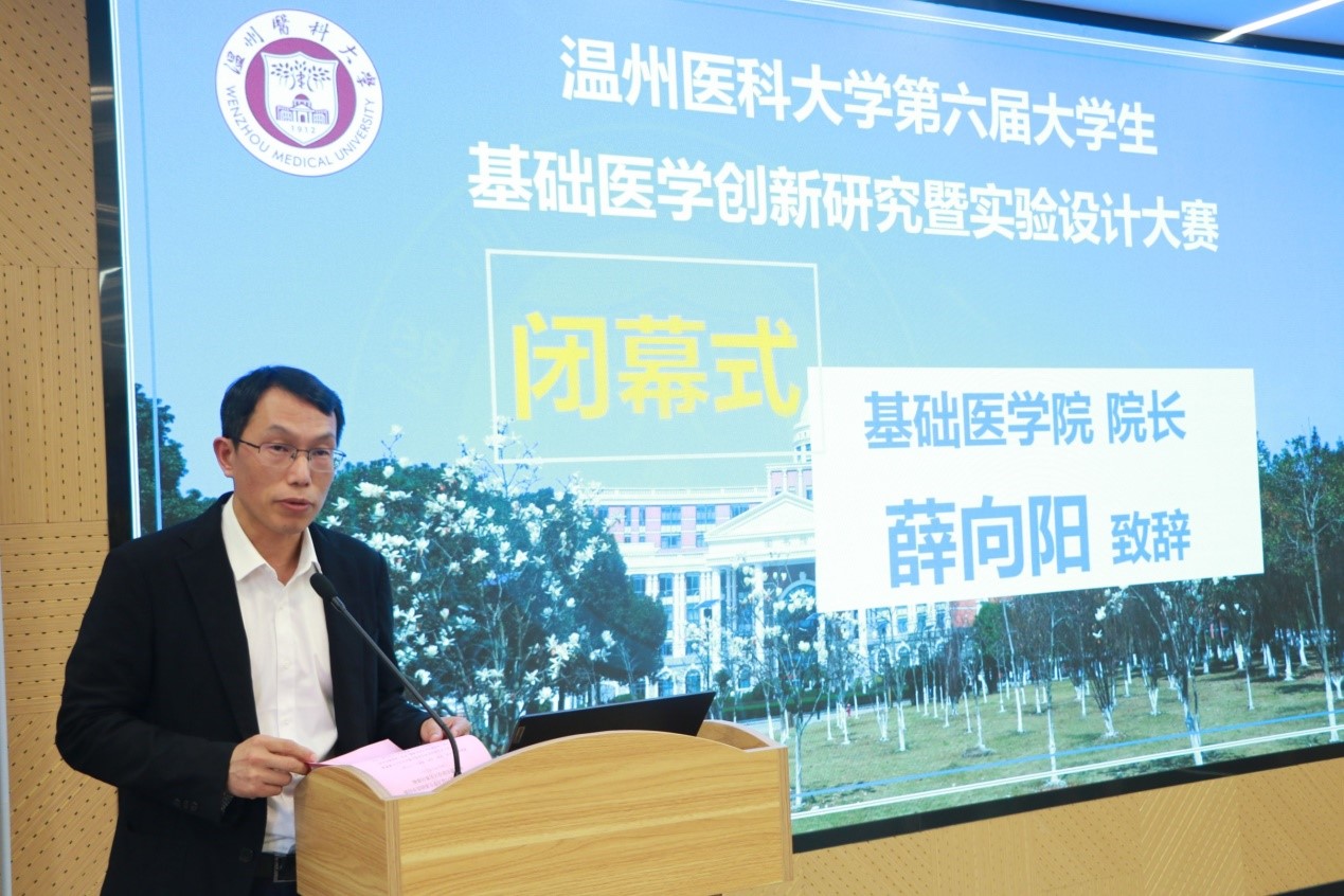 闭幕式上,薛向阳对取得优异成绩的参赛队伍表示祝贺,对各位专家评委的辛苦付出表示衷心感谢。他指出,由高等学校国家级实验教学示范中心联席会主办“全国大学生基础医学创新研究暨实验设计论坛(大赛)”已纳入《2023全国普通高校大学生竞赛分析报告》的竞赛目录,我校在历年的比赛中斩获佳绩,曾连续3年获得了优秀高校组织奖。“第九届全国大学生基础医学创新研究暨实验设计论坛(大赛)”决赛即将于今年8月举办,他希望,通过本次校赛选拔出来的参赛项目和团队,项目指导老师和参赛学生要精益求精,根据专家指导意见精心打磨,在未来的区赛和国赛中再创佳绩。