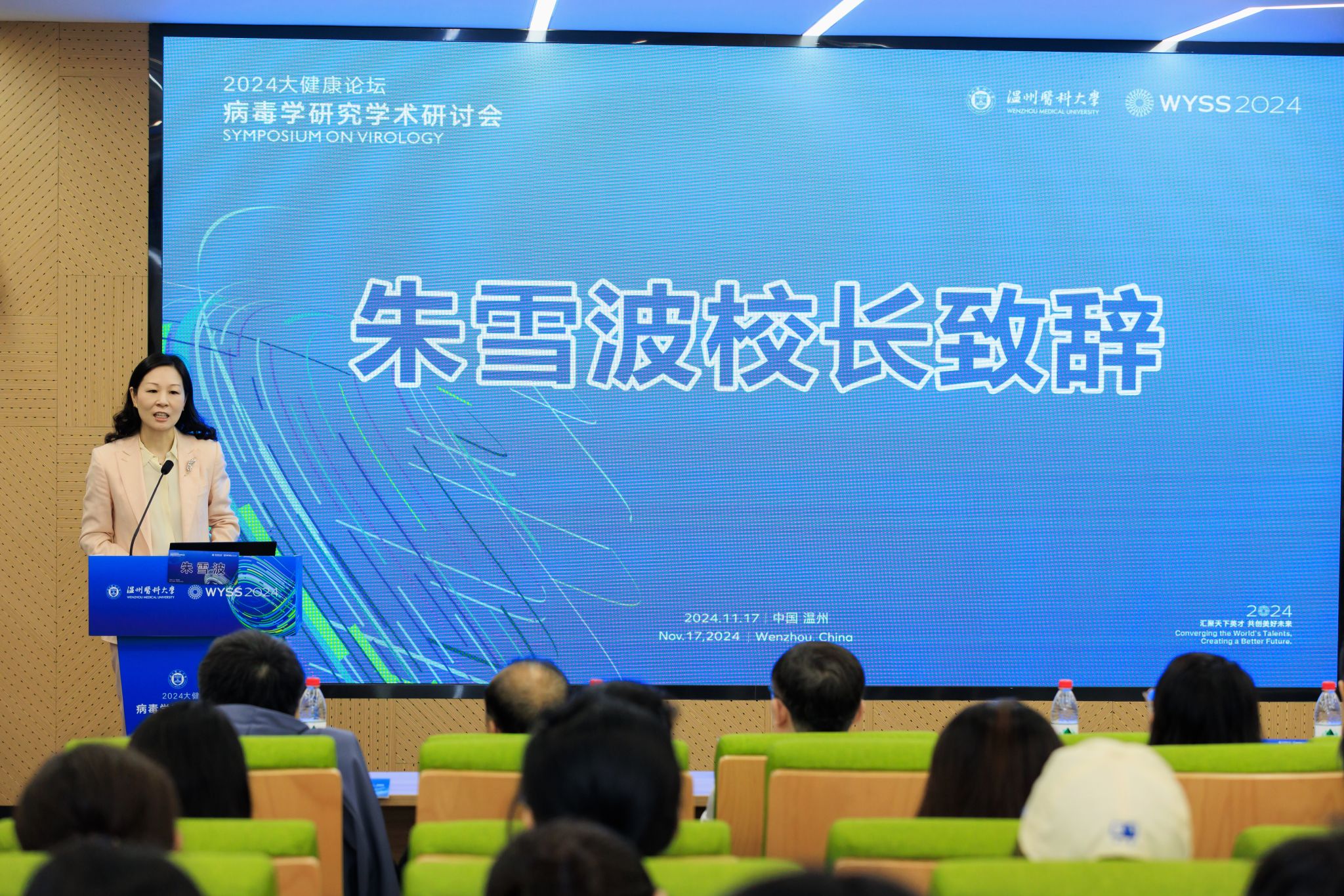的发展历程和近年来取得的成就,并对各位专家和青年学者莅临表示热烈的欢迎和诚挚的感谢。她说,在疫情防控期间,温医大和温医大附属医院积极开展患者救治和科研攻关,为地方医疗系统救治和政府决策交出了满意答卷。基于临床、教学和科研的联动,让我们更加意识到基于病毒相关性疾病研究、治疗技术、药物疫苗研发的重要性和紧迫性,希望通过此次研讨会搭建病毒学领域交流的平台,碰撞思想火花,促进病毒学领域的学术交流与合作,并预祝本次论坛取得圆满成功。
