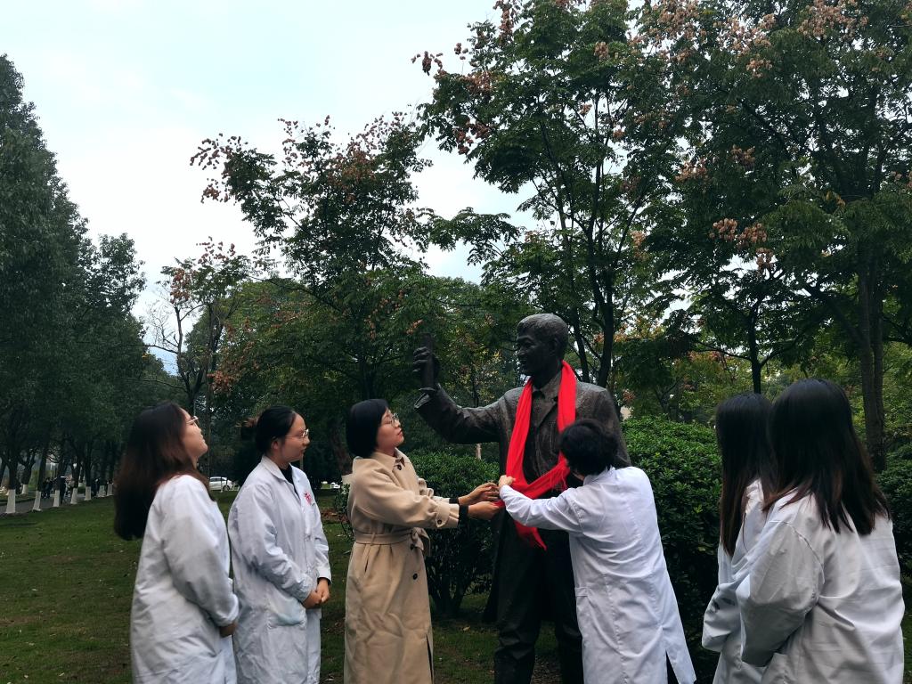 在活动现场,到场师生还一同为铜像披上温暖的红围巾,为“周健博士”送上冬日的“第一抹暖意”。