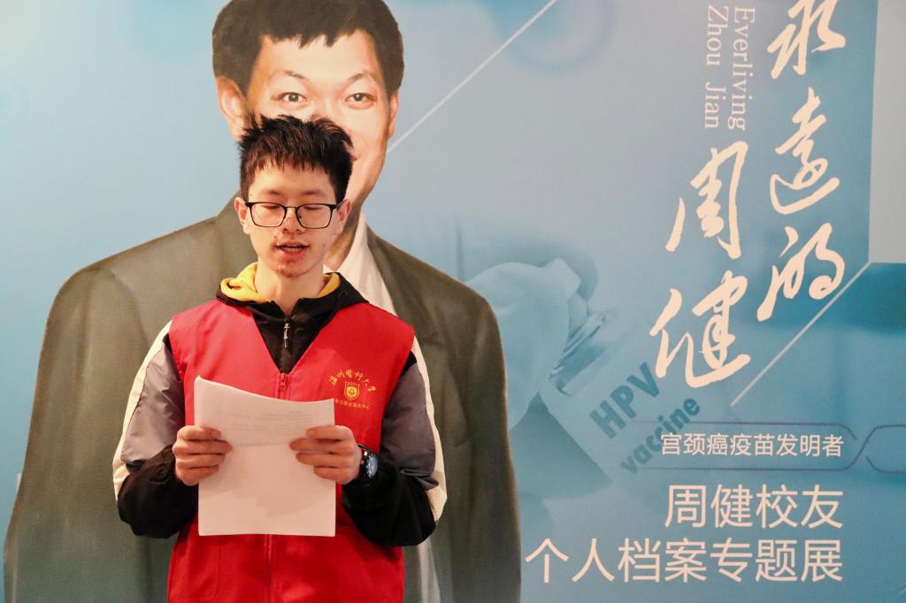 在现场,基础医学周健创新班和大学生健行志愿服务社的同学还分享了他们“眼中的周健”,并向周健博士铜像献花。