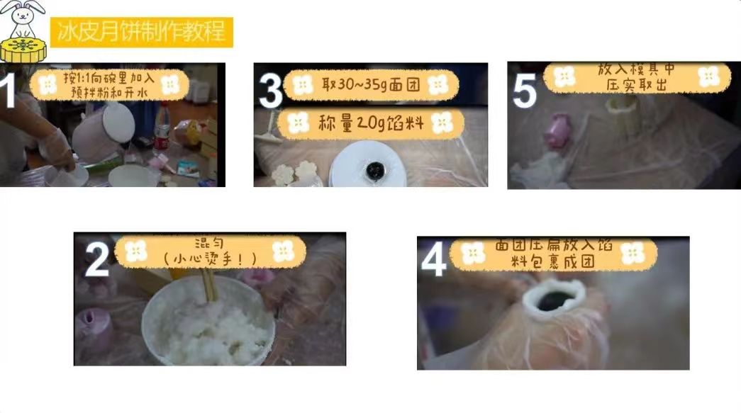 晶莹软糯的饼皮、各色各味的流心,经过揉面包馅,再合拢压进精巧的模具,不一会儿,一个个小巧精致的月饼就“应运而生”了。尝到亲手制作的月饼,大家内心感到满满的自足感和成就感。
