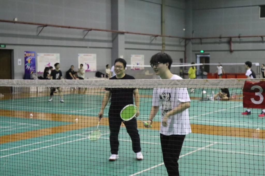 本次羽毛球赛共设置了教工组、学生组及师生混合组,三个组别。首先进行的是师生混合赛。在比赛中,教师与同学分组共同抽签,随机编队进行师生混合竞技。在完成组队和简单热身后,各师生组按照淘汰制进行“捉对PK”。赛场上,老师与同学们配合默契、攻守有据,现场好不热闹!