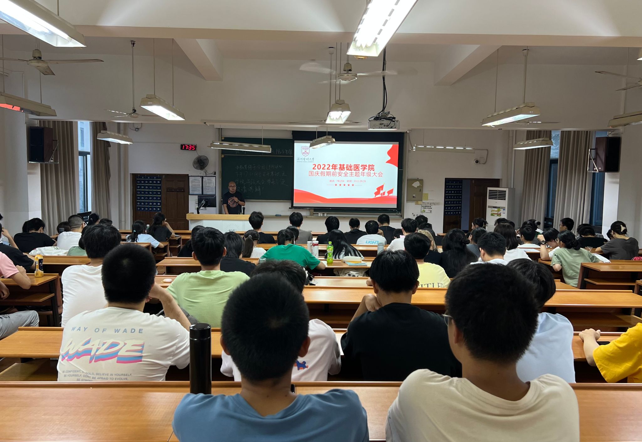 召开安全主题年级大会,开展安全教育,安排部署年级工作。学生辅导员彭翔主持此次会议,全体基础医学专业参加大会。