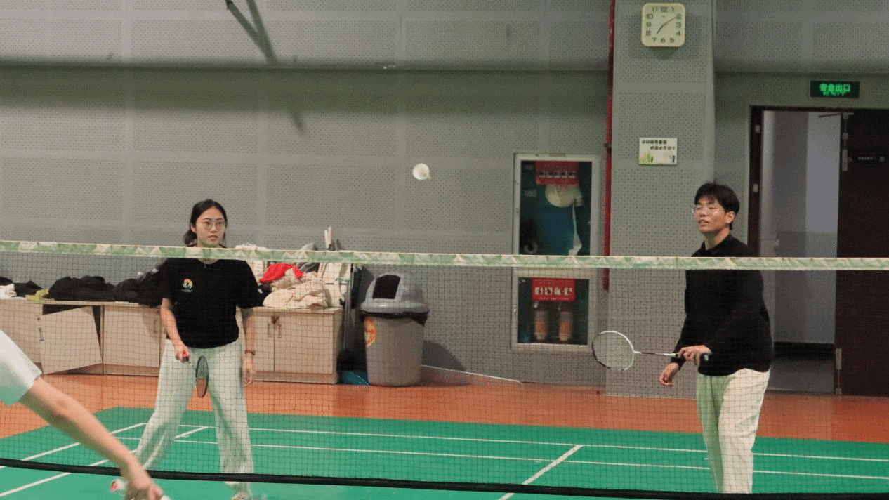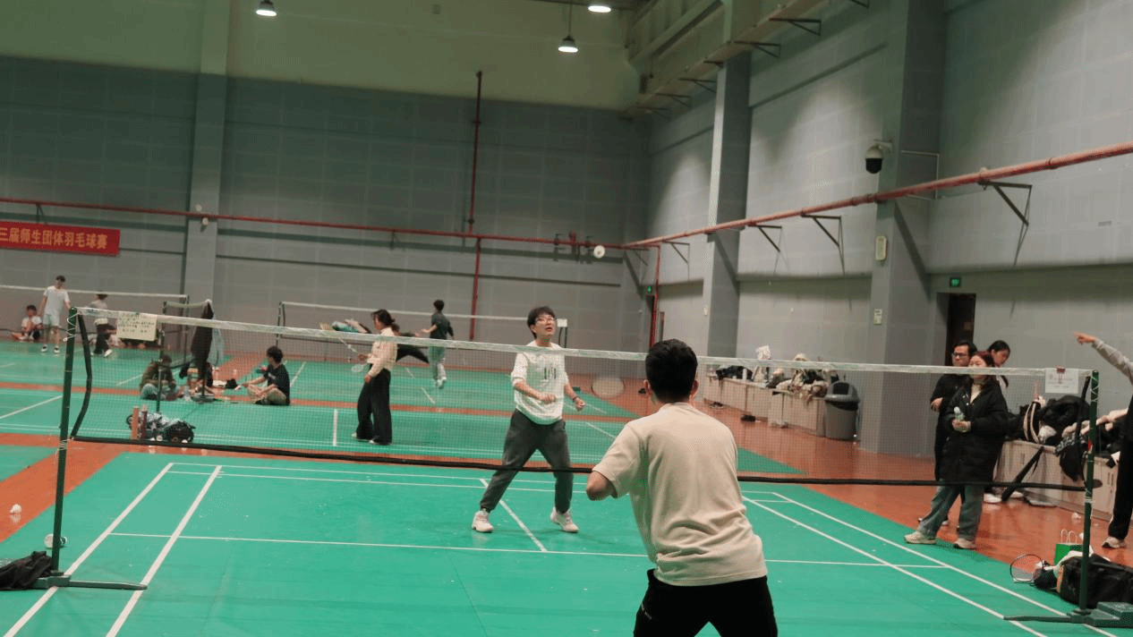 在师生趣味赛中,老师与学生通过抽签随机分组,在简单热身后,各小组展开了争取出线并最后角逐冠军的PK。老师与学生们的共同拼搏将这场羽毛球赛带入了新的高潮。