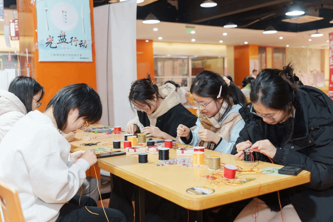师生们使用五彩线材编织出各式各样的手环,每个人都可以根据自己的喜好,选择不同的颜色和图案,亲手编织一个独特的手环。制作完成后,大家将自己编织的手环互相交换,增进了彼此之间的友谊。