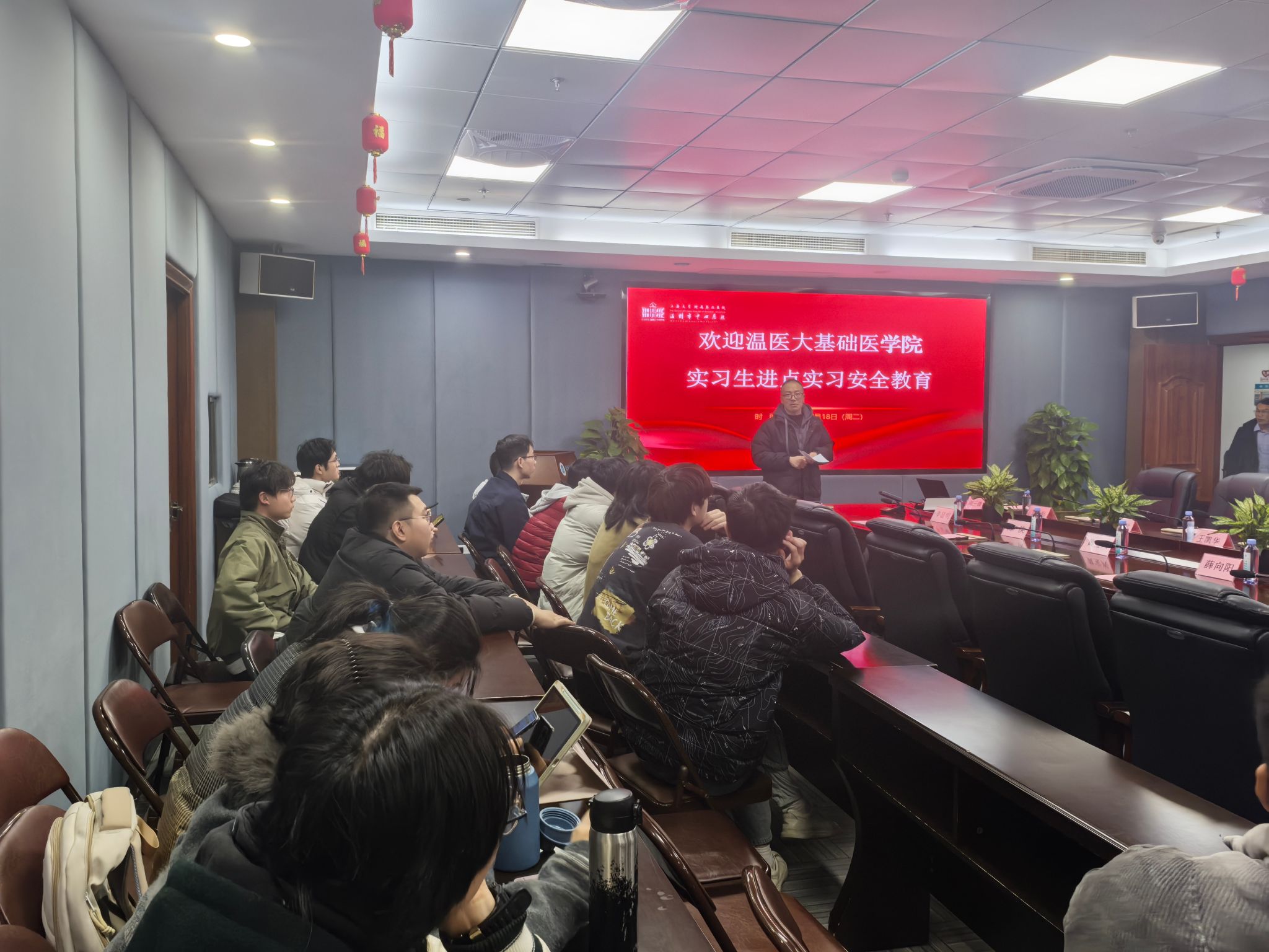 于2月18日在温州市中心医院召开2021级基础医学专业临床见习安全教育会,会议由学院党委副书记黄宝兴主持。