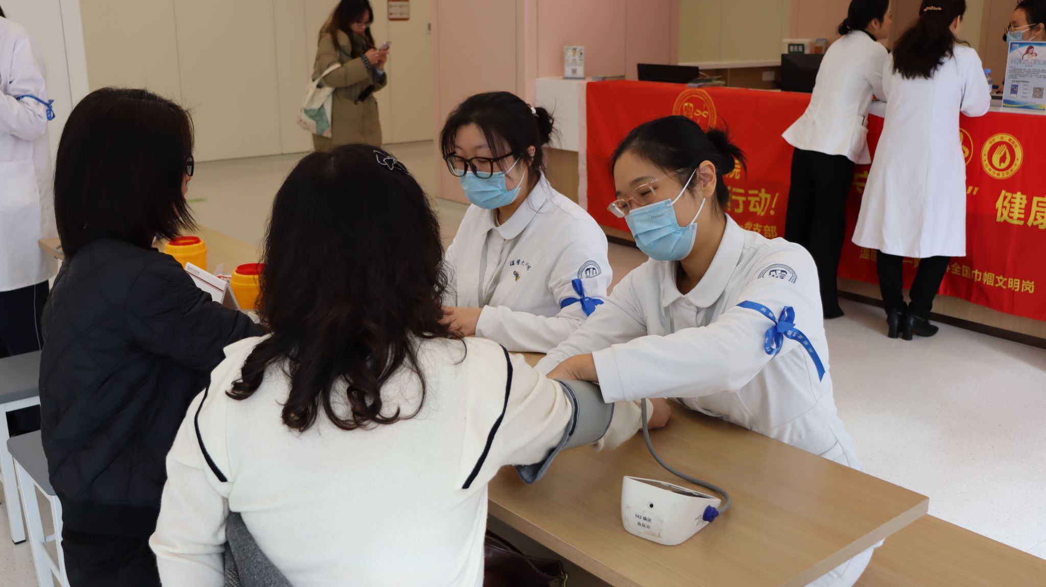 活动当天,党员学生们早早来到龙港院区,迅速投入到紧张而有序的准备工作中。在院区门诊大厅,一场热闹非凡的健康咨询与义诊活动拉开帷幕。前来咨询的女性络绎不绝,涵盖了各个年龄段。党员学生们充分发挥自身专业优势,耐心地为每一位咨询者解答疑问。他们围绕女性常见疾病,如乳腺疾病、妇科炎症、月经不调等,进行了详细的讲解,并提供了专业的预防和治疗建议。对于一些对自身健康状况感到担忧的女性,学生党员们不仅给予了专业的指导,还通过温和的话语给予心理上的安慰,缓解她们的焦虑情绪。