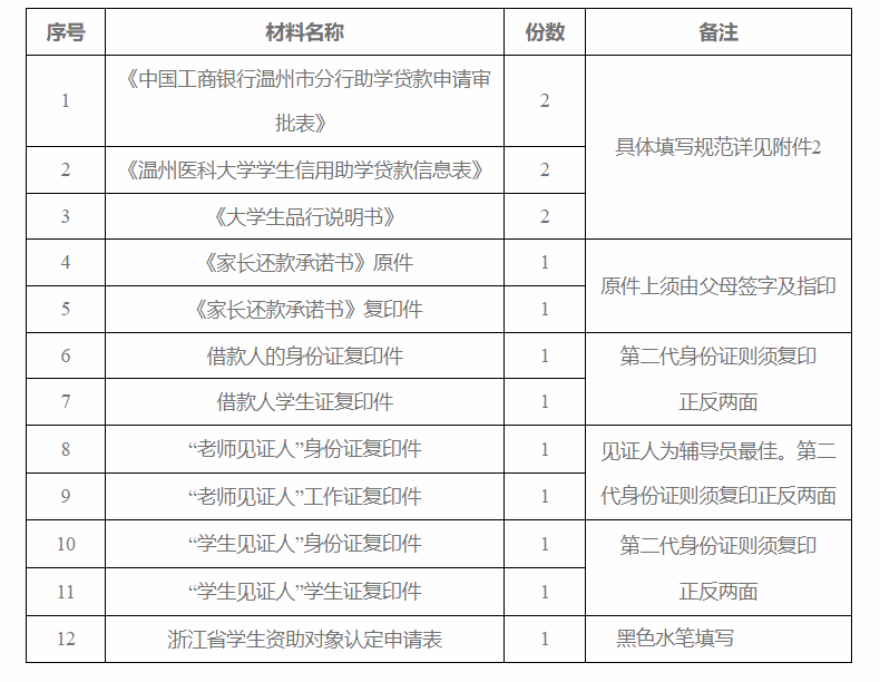贷款相关材料详见附件1下载,具体填写要求详见附件2。所有申请材料都必须用A4纸,其中个人的两种证件合用A4纸一张,若所持身份证为第二代身份证,则须复印正反面。申请材料按上表顺序整理成一份,然后用回行针固定。
