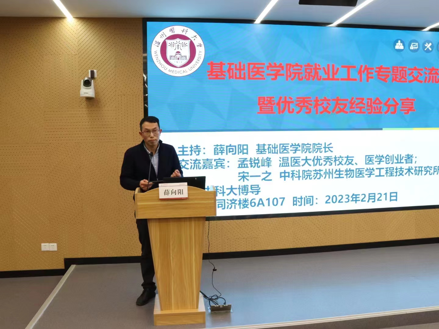 在同济楼6A107举行“就业工作专题交流会暨优秀校友经验分享会”,我校杰出校友代表、医学创业者孟瑞锋与中科大博导宋一之研究员在创业创新和科研学术方面各自进行了经验分享与交流。鉴黄师