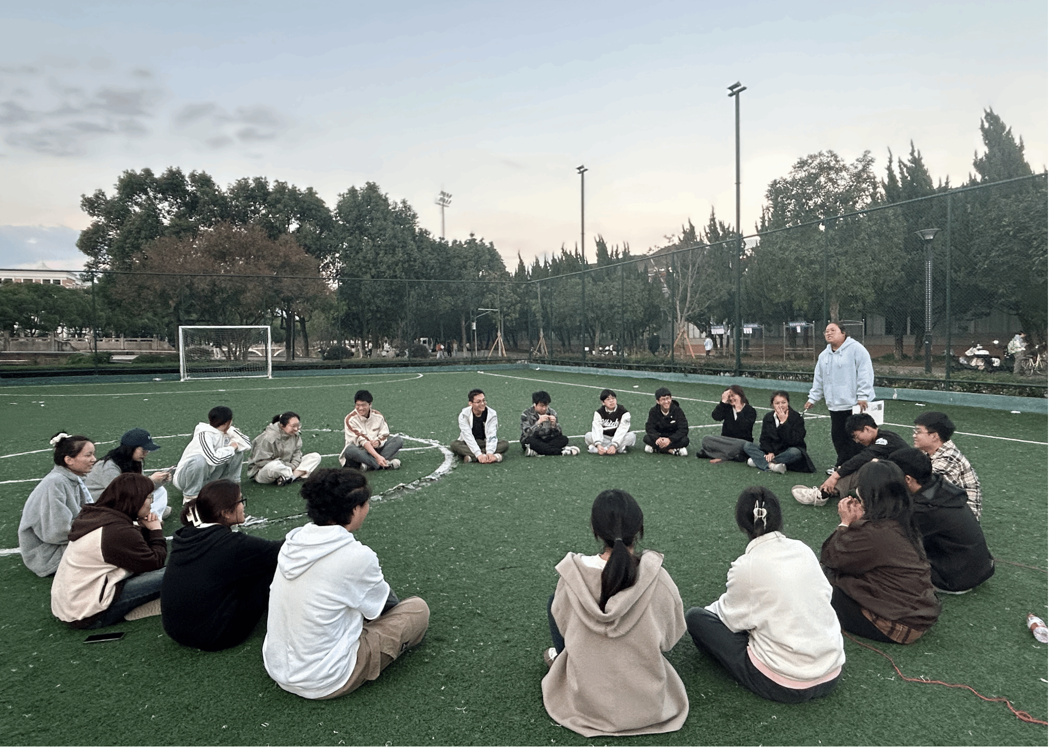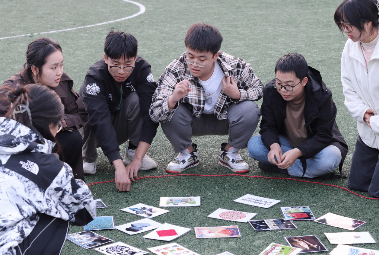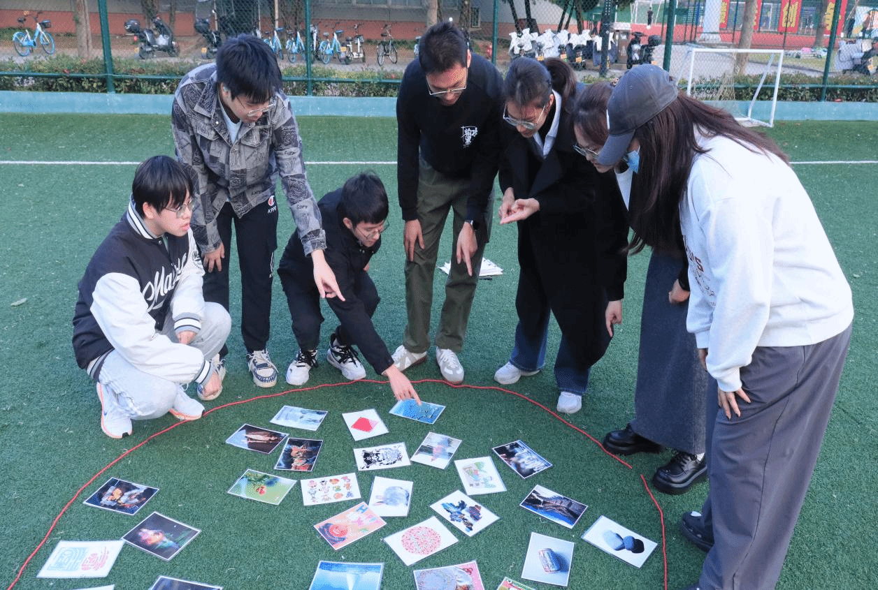 活动伊始,现场氛围热烈而充满期待。同学们依据活动安排分成5组。每个小组成员的脸上都洋溢着笑容,大家围在一起,开始彼此之间的交流。为更好地记录这一美好时刻,每组同学纷纷摆出富有创意的队形进行合影留念,留下珍贵的回忆。