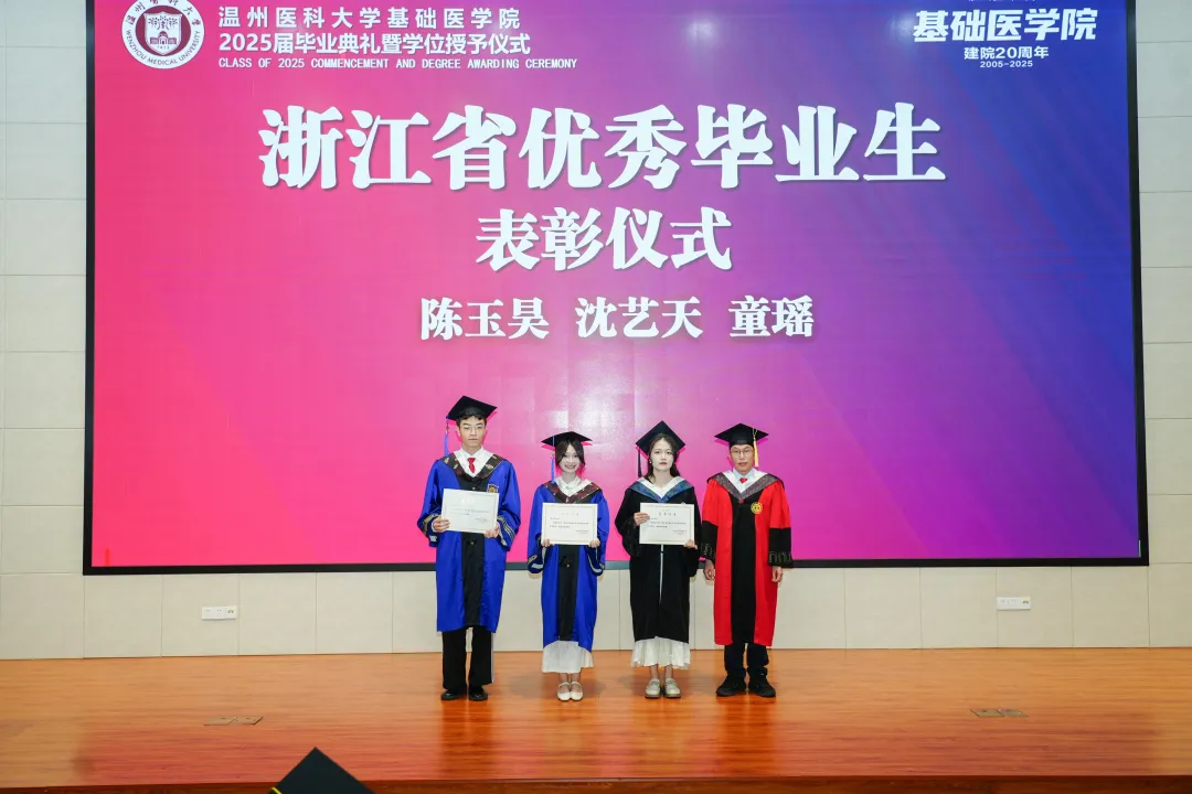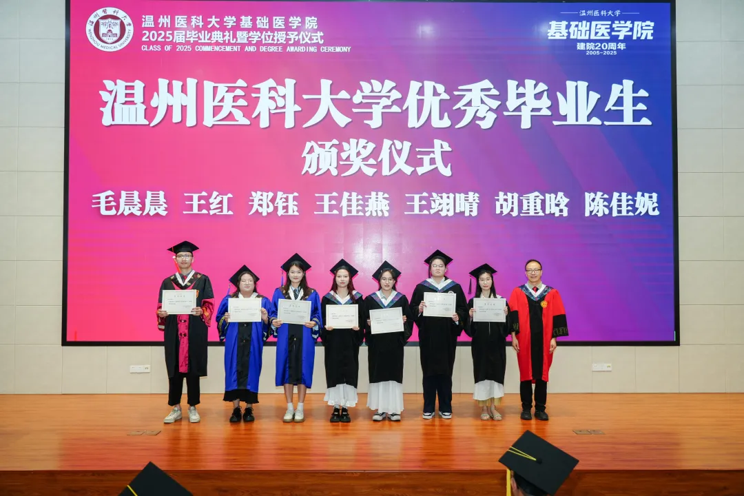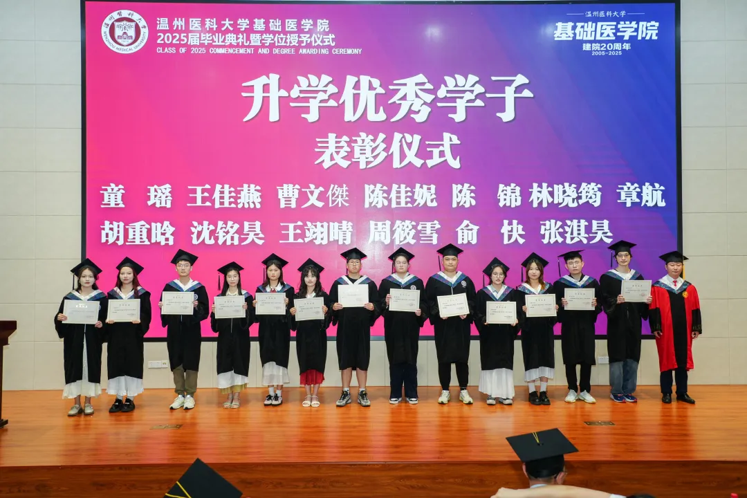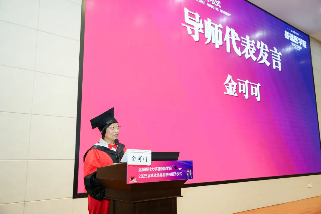 首次同时为本、硕、博三个学历层次的毕业生举行集体仪式。仪式的背后,不仅是对不同阶段求学成果的集中见证,更折射出一代代基础人“如切如磋,如琢如磨”的坚守与“踔厉奋发、坚韧不拔”的奋进内核。从本科阶段的知识积淀,到硕士、博士阶段的科研探索,三个学历层次的毕业生在此汇聚,既象征着基础医学人才培养体系的完善与发展,也彰显了学院始终秉持“仁肃勤朴,求是奋发”的校训精神,在医学教育与科研道路上不断攀登的决心。2025届毕业生们即将带着这份精神传承踏上新征程,愿他们始终坚守基础情怀,在人生更高处续写属于温医人的精彩篇章。