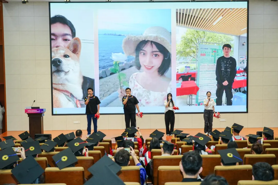 在毕业生学位授予仪式前,《青春的刻度》朗诵深情上演:实验室里的数据交锋、考研路上的挑灯夜战、志愿活动中的温暖传递,以及“周健精神”浸润下的初心坚守。这些青春刻度,生动诠释了从青涩到成熟的蜕变,让“仁肃勤朴,求是奋发”的校训精神在岁月沉淀中愈发清晰。