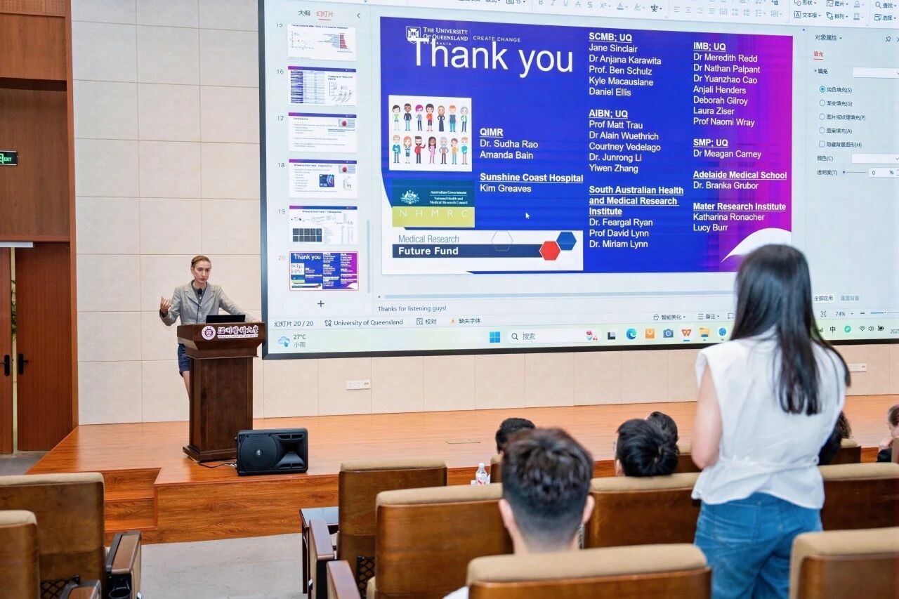 师生提供了与病毒学、免疫学、肿瘤学等领域国际顶尖学者面对面交流的宝贵机会。通过专题报告、学术研讨等环节,师生们拓展了科研视野,激发了创新思维。此次交流不仅延续了中澳医学合作的深厚情谊,更践行了"科研育人、学术领航"的教育理念。未来,学院将持续搭建此类学术桥梁,推动更多国际学术交流,为培养具有国际竞争力的医学人才、产出高水平科研成果提供有力支撑。