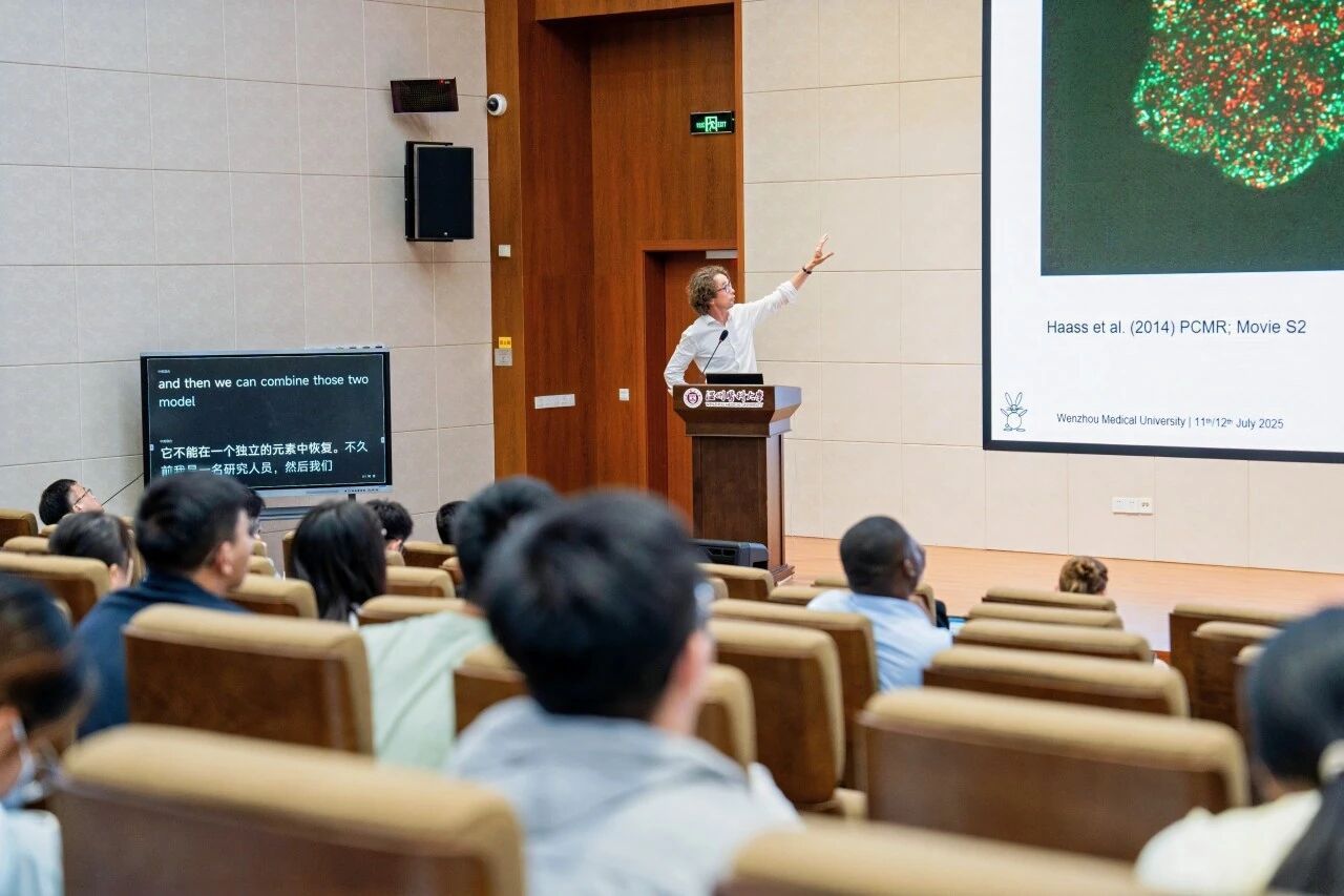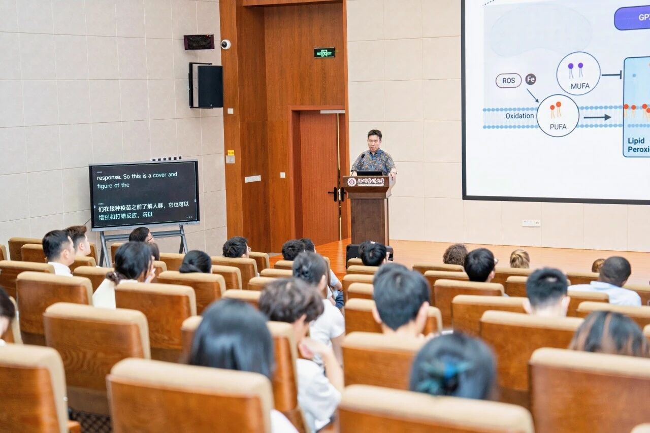 Di Yu教授以四张跨越时空的照片开篇,展示周健博士与伊恩·弗雷泽教授架起了两校科研合作的桥梁,三十余年来,两校以此为基础保持着紧密合作。接着,从T滤泡辅助细胞出发,介绍了其在铁死亡干预中的特性,及饮食中脂质等元素在铁死亡、免疫系统应答中展现出独特的调控功能。为探索疾病防治的饮食干预策略及免疫调节新靶点提供了重要启示,推动了代谢与免疫交叉领域的研究进展。Nikolas Haass教授的研究聚焦于攻克免疫检查点抑制剂耐药难题,他通过丰富的动画、短片展示了其团队如何基于细胞核及细胞外基质的特性,利用诱导免疫原性细胞死亡联合免疫检查点抑制剂治疗,探索逆转耐药的靶向策略。这一研究为改善黑色素瘤患者预后、推动免疫治疗向前发展提供了重要方向,有望让更多患者从免疫疗法中获益。