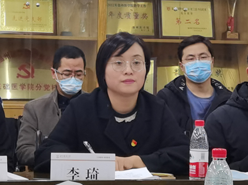 是温医大成立最早,规模最大的二级学院之一,有优秀的历史传统,是教学大单位,是医学生培养的关键一环。要把学习党的二十大精神,和争做育时代新人的大先生结合起来。吕一军强调,学习贯彻党的二十大精神,基础在学,重点在思,关键在做,落地在行,要做到学思悟贯通,知信行合一,以党的二十大精神为引领,做“经师”与“人师”相统一的“大先生”,为党育人,为国育才。要以学为先,把学习宣传贯彻党的二十大精神作为当前和今后一个时期的首要政治任务,领导干部带头学、示范学,开展宣讲,推动党的二十大精神覆盖到每个党支部、每位师生。要以思为要,要坚持守正创新,既要坚持正确的世界观和方法论,又要以新的理论指导新的实践,以新观念新方法谋划未来的发展。要以用为本,注重师德师风建设,以好老师的标准来严格要求自己,教好书、育好人,把党的二十大精神转化为指导实践、推动学校及学院发展的强大力量。吕一军希望学院要在学深悟透、创新形式、谋划发展、实效实绩上下功夫,深刻把握党的二十大报告精神,切实把思想和行动统一到党的二十大决策部署上来,扎实推动党的二十大精神落地生根、结出硕果。