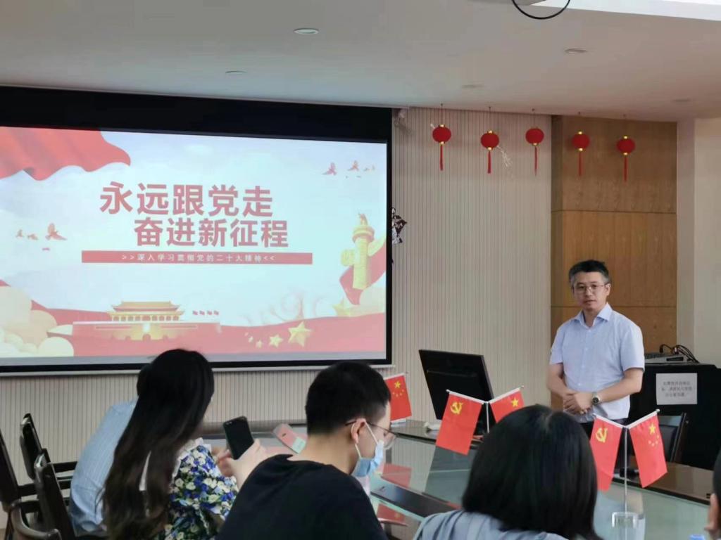 金献测副院长带领大家深入学习贯彻党的二十大精神,做了“永远跟党走,奋进新征程”的专题党课宣讲。金献测对党的二十大精神进行深入浅出的解读,要求大家把立德树人放在第一位,结合自身实际情况做好课程思政建设,上好每一堂课,为实施科教兴国战略贡献自己的力量。