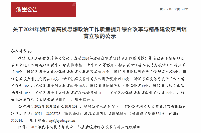 近日浙江省教育厅公布2024年度省高校思想政治工作质量提升综合改革与精品建设项目名单,学院《致敬“无言良师” 培育医者大爱 ——鉴黄师