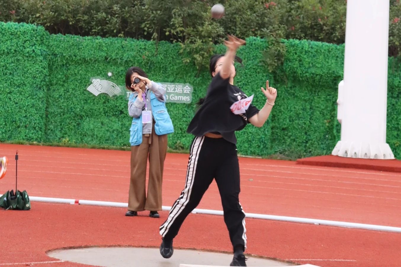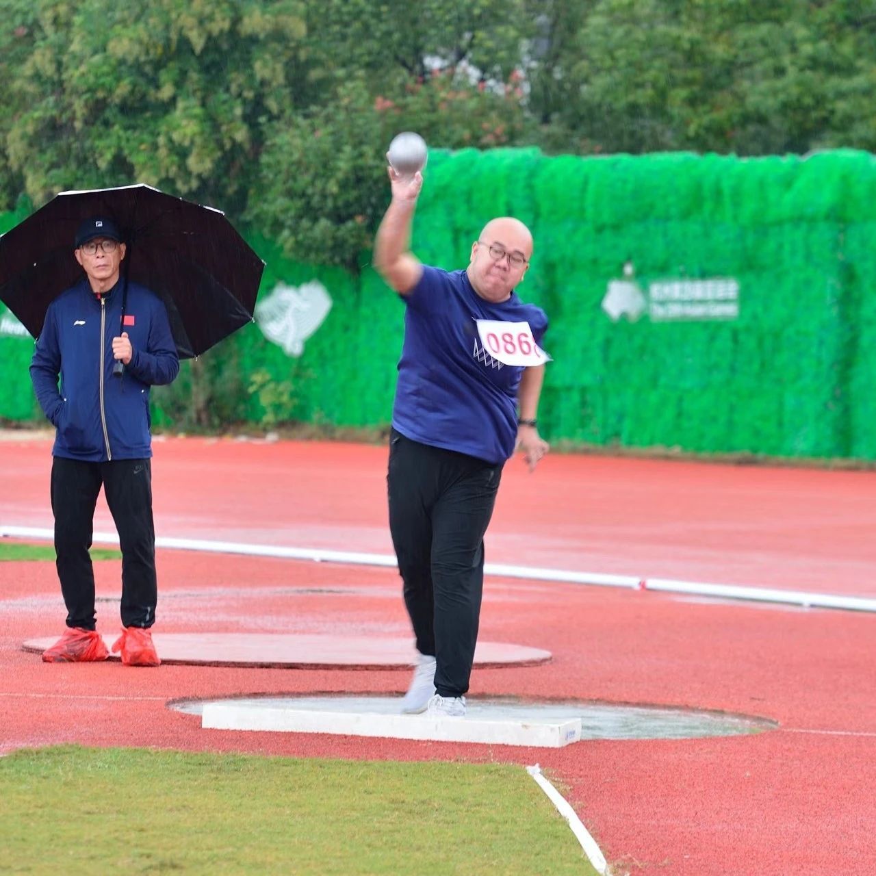 周鹏获教乙中年男子组铅球第二名。