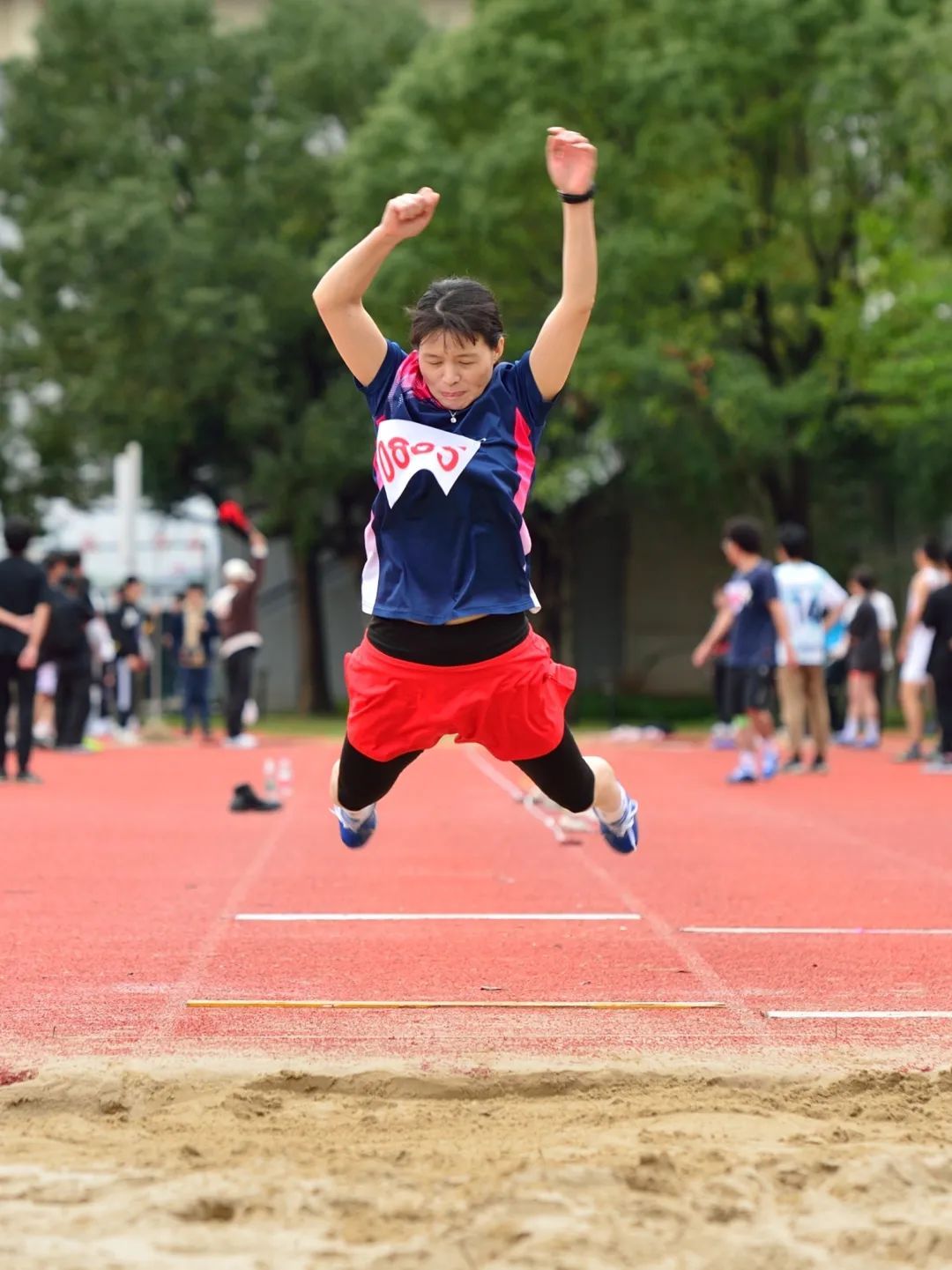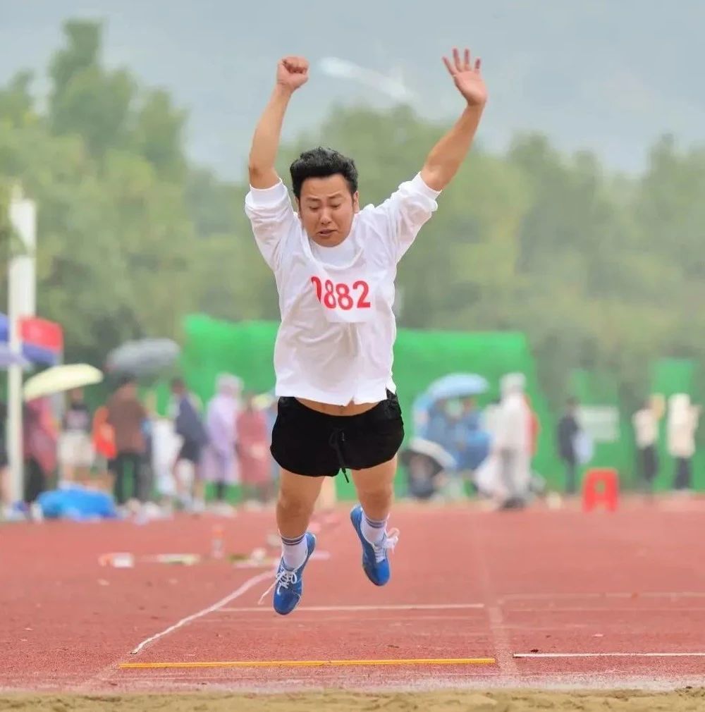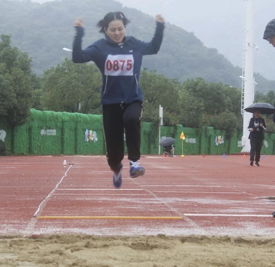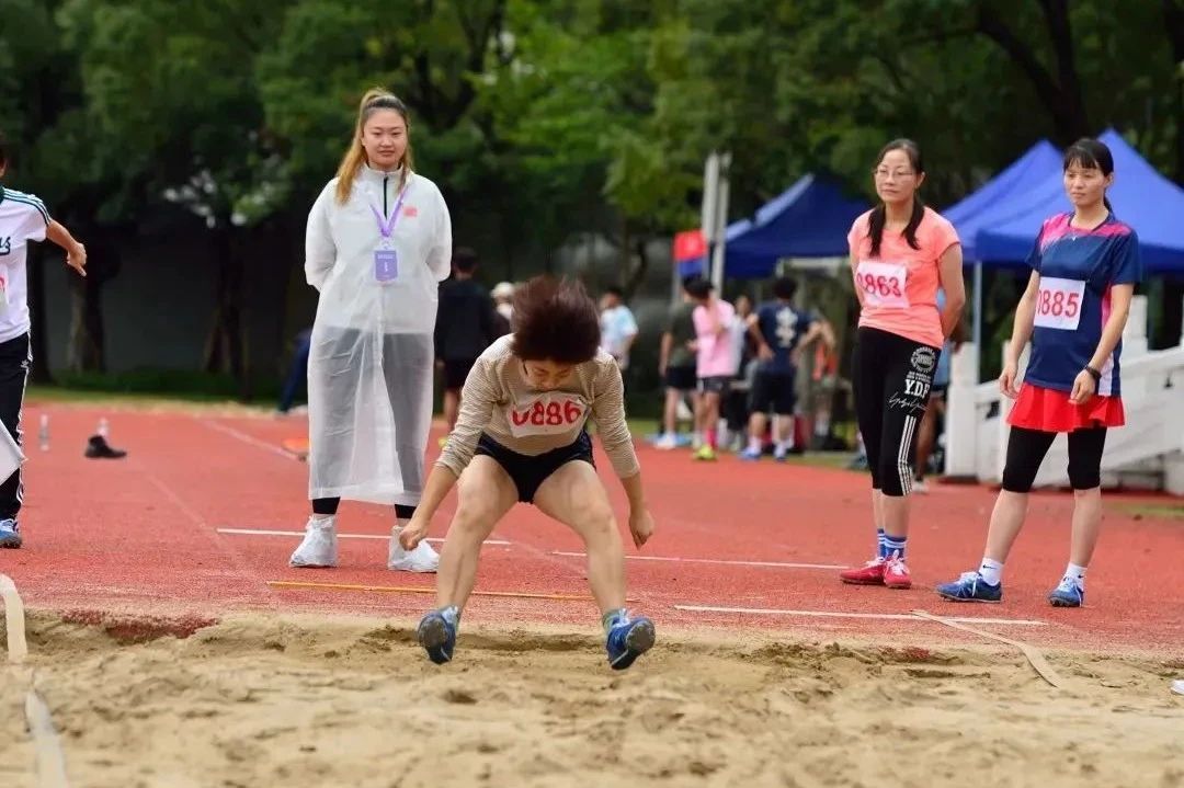 董仙飞获教乙中年女子立定跳远第三名。