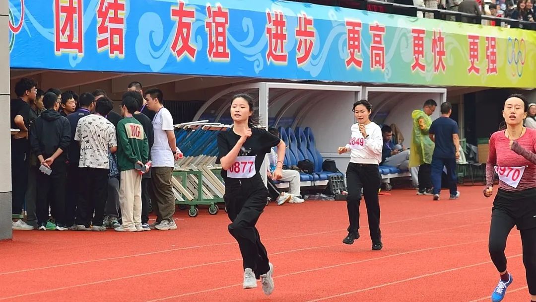 在径赛项目中,基础师生意凌秋霜,气若山海,同心协力,昂扬奋发。