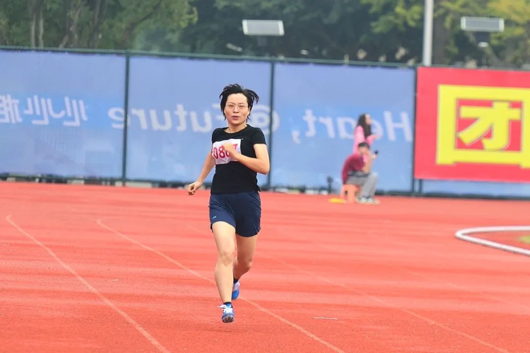 董仙飞获教乙中年女子400米第三名。
