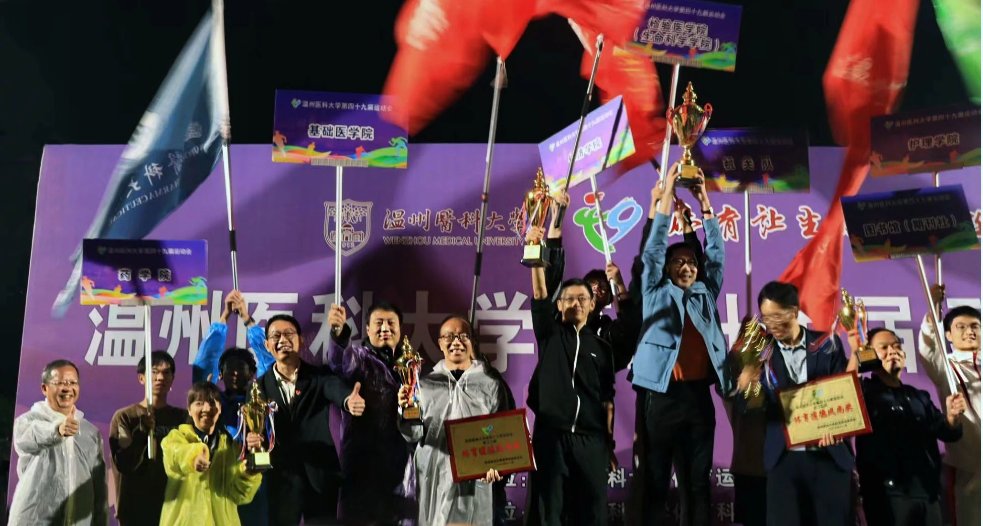 师生无畏风雨,不惧挑战,胸怀热血与激情,历经多番角逐较量,顽强拼搏,最终获得3金、5银、7铜,位列教工乙组团体总分第四名。