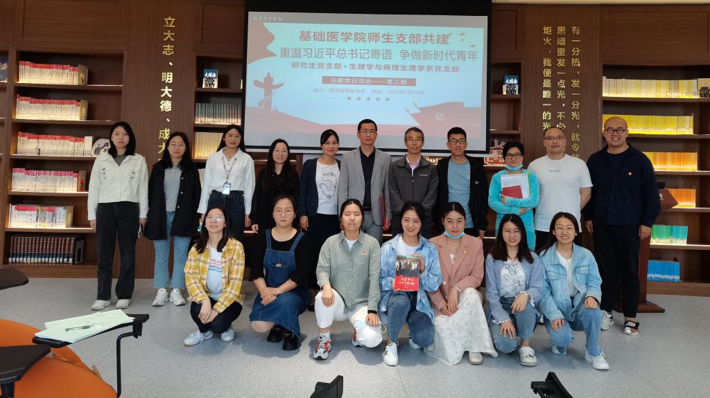 为发挥基层党建的核心引领作用,推进学习型党组织建设,促进党员提升思想境界、增长知识才干,加强师生党支部之间互促共育氛围,5月10日上午,鉴黄师 师生党支部在图书馆青春之书房联合举行“重温习近平总书记寄语,争做新时代青年”主题党日活动暨师生理论学习交流会。生理学与病理生理学系党支部和研究生党支部第三党小组党员参加本次活动,活动由研究生党支部副书记彭翔主持。会上,生理学与病理生理学系党支部书记汪洋...